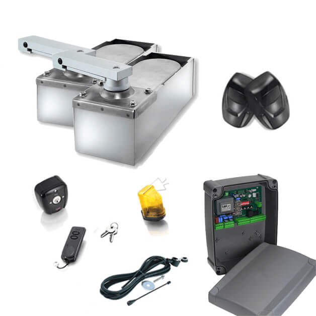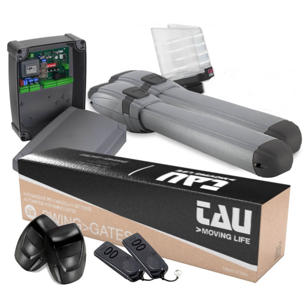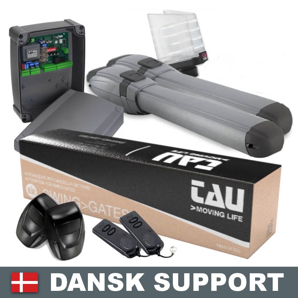 TAU Portautomatik til svingport til en max. port kapacitet på 2,3 meter. Velegnet til porte med store muresøjler. Leveres i et komplet KIT (sæt) klar til at installere.